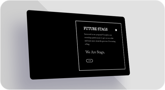 FUTURE STAGS Interested in our program? Complete our recruiting questionnaire to get on our radar and learn more about the process of becoming a Stag. We Are Stags.