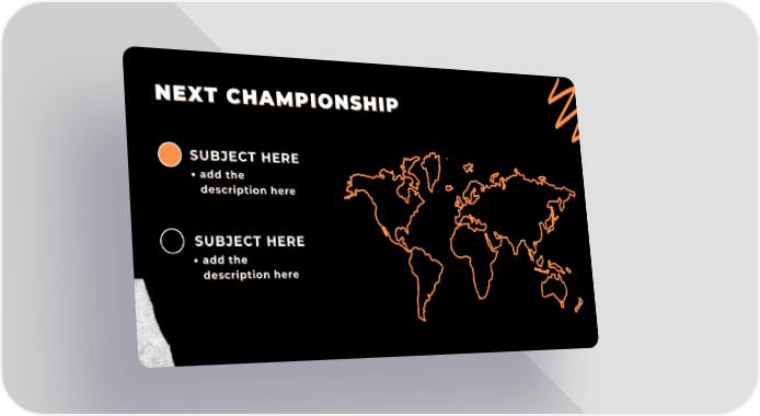 Team Portfolio Presentation Page 5 Page 7NEXT CHAMPIONSHIP NEXT CHAMPIONSHIP SUBJECT HERE SUBJECT HERE add the add the description here description here SUBJECT HERE SUBJECT HERE add the add the description here description here
