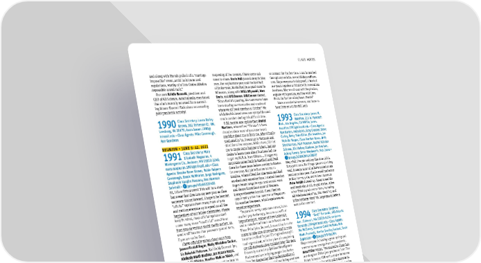 FALL 2021 61 CLASS NOTES and along with friends pulled off a ‘marriage impossible’ event, amid lockdowns and regulations, worthy of a Tom Cruise Mission Impossible soundtrack.” Our own Kristin Bennett , president and CEO of KB Science, nonchalantly mentioned that she’s recently returned from summit - ing Mount Everest! Talk about an amazing post-pandemic activity! 1990 Class Secretary: Laura Bailey Brown, 302 Patterson Ct. NW, Leesburg, VA 20176; laura.brown.1990@ trincoll.edu • Class Agents: Mike Cavanaugh, Ron Goodman REUNION • JUNE 9–12, 2022 1991 Class Secretary: Mary Elizabeth Magauran, 4 Wintergreen Cir., Andover, MA 01810-3248; [email protected] • Class Agents: Brooke Rorer Brown, Robin Halpern Cavanaugh, Brook McWhirter, Jorge Rodriguez, Stephanie Vaughn Rosseau, Ann Newman Selvitelli • / groups/49566326408 Hi, fellow Trin alumni! This will be a short but sweet first dive into my new post as class secretary. Going forward, I hope to be hearing “official” updates from many more of you and getting everyone up to speed on all the happenings of our fellow classmates. Please keep in mind, these official updates don’t count many more “unofficial” ones I hear from you on various social media outlets. So, send stuff into me that you want posted here, if you are so inclined. I have officially gotten shout-outs from Joanne Fredell Bagan , Molly Whelahan Ducker , Liz Bakulski Peterson , Kaitlin McDermott ’90, Kimberly Marth Boehner , Jen Tesoro Reese , Brook McWhirter , Heather Watkins Walsh , and Rachel Kroh Shook . They all send the best to all classmates. Speaking of which, in-person Reunion is being planned ’neath the elms for June 2022. I’ll be posting what I know in the months to come, but your best bet for info is to check the Trinity website. Really looking forward to it happening and seeing those who can make it and for sure hoping that will be a good majority of you. Take care all, and keep those cards and letters flowing. REUNION • JUNE 9–12, 2022 1992 Class Secretary: Jennifer Murphy Cattier, 1435 Lexington Ave., Apt. 5E, New York, NY 10128-1630; jennifer.cattier.1992@trincoll. edu • Class Agents: Campbell Barrett, Laura Weintraub Beck, Ian Findlay, Ned Rollhaus • / TrinityCollege1992 Dear Class of 1992, I hope that you are enjoying the summer, especially with the reopening of the country. I have some sad news to share. Kevin Hall passed away in May 2021. For sophomore year and the first half of junior year, Kevin lived in a quad room in Wheaton, along with Mikio Miyawaki , Marc Davis , and Bill Dennen . Bill Dennen shared, “Since Kevin’s passing, his roommates have been sharing our memories and stories of when we all lived together at Trinity.” We wish Kevin’s loved ones our sympathies and much comfort during this difficult time. I did receive one update from Daniel Martinez , who writes: “I know it’s been decades since most of you have heard anything about me or from me. After I finally graduated in ’93, I went up to Vermont and skied for a few seasons. While there, life led me to create some bumper stickers, and my desire to learn more about business led me to get my M.B.A. from UMass. ... I began my corporate career back in Hartford and lived there for three years before moving to Boston for one year. My job in Boston led me to London, where I lived for nine years and had an absolutely amazing time. I started dancing Argentinean tango in 1994 and would travel and dance throughout most of Western Europe whenever I could. Then I had an opportunity arise that took me to Singapore for another five years, which again was an amazing experience. “In parallel to my corporate career, I also studied psychotherapy, became a certified hypnotherapist, trainer of New Code NLP, and a transformational coach based on the Three Principles. In 2016, I moved back to the States to take care of my mother and in 2020 became certified in past life regression (spiri- tual regression), with the plan of completing my Life Between Lives training later this year. I recently started my Spiritual Intelligence Podcast and am helping people live better lives by deepening their understanding of what it means to be a spiritual being and how that can translate into a better quality of life in our day-to-day experience. I call my work Life Beyond Form because there is more to life than the just the form that we experience. It would be amazing to hear from anyone who would like to reach out and reconnect or connect for the first time. I can be reached through my website, www.LifeBeyondForm. com. Hope everyone is doing well. I think of our years together at Trinity with tremendous fondness. May we all soar with inspiration, explore with passion, and live with love. From the bottom of my heart, Daniel” Have a wonderful summer, and hope to hear from you in the fall. Jenn 1993 Class Secretary: James M. Hazelton, 215 N. Plymouth Blvd., Los Angeles, CA 90004; james. [email protected] • Class Agents: Ran Barton, Andy Brick, Greg Creamer, Steve Curley, Betsy Yahn Gillon, Jim Hazelton, Jen McArdle Hoppa, Elissa Raether Kovas, Britt Stockton Lee, Matt Peterson, Rachel Schreier Schewe, Kiki Rainey Sizelove, Jon Trevisan, Ashley Turney, Steve Woodworth, Nick Zaino • /groups/522663641408997 Hey, y’all. I’ve got nothing this time. Zilch. Zero point zero. But I hope you are all doing well. It seems most of us have turned or are turning 50 this year. I had a small gathering in May for my 50th, and fellow classmate Peter Knight showed up. Great to see him and laugh about old, stupid stories. A few other Trinity grads were there, including Ali Friedman Baird ’94, Tim Ward ’07, and Erika Anthony Ward ’08. Hope you all have a wonderful summer! 1994 Class Secretary: Sanjeeva “Sanji” Fernando, 183 Atlantic Ave., Cohasset, MA 02025-1434; sanjeeva. [email protected] • Class Agents: Mo McEleney, Suzanne Cahill McNabb, Deb Watts Povinelli, Martha Smalley Sanf