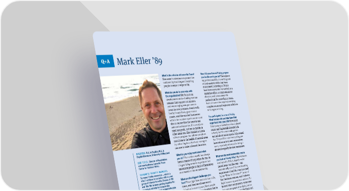 CLASS NOTES Q+A 60 THE TRINITY REPORTER What is the mission of Leave No Trace? The center’s mission is to protect the outdoors by teaching and inspiring people to enjoy it responsibly. What do you do in your role with the organization? My focus is on development work—finding revenue streams that support our mission and encouraging new partners to invest in core programs. I work with family foundations, government grants, and like-minded businesses within the outdoor sports market and also in sectors like the tourism and automotive industries. It’s a medium- sized nonprofit, so I get to dabble in other areas too, like creating a citizen science program that allows people to contribute to the health of natural areas by collecting data that land managers can use to make informed decisions. What do you enjoy most about what you do? The outdoor world has always been a source of inspiration for me, so it’s gratifying to work on projects that encourage people to think of themselves as stewards of the natural world. What are the biggest challenges you face? You might have noticed that trails, rivers, and beaches all saw record visitation in recent years. Most people want to play a positive role when they’re outdoors, but they aren’t always aware of the simple protective measures they can enact. The center emphasizes the concept of cumulative impacts—it’s about taking individual actions that add up to benefit the environment. How has COVID-19 impacted parks and natural areas? The pandemic forced many people to cancel their plans for air travel and destination-focused vacations. Pretty much everyone decided to scoop up some camping gear and head into the great outdoors. That’s good news in terms of peoples’ awareness of natural areas, but it also means that there are lots of folks trying new activities and a profound need for practical, easily understood advice. How did your time at Trinity prepare you for the work you do? Throughout my professional life, the writing and critical-analysis skills that I was encouraged to develop at Trinity have been essential. I’ve worked as a magazine editor, a communications director, and now a nonprofit professional for more than 15 years. Each of those roles required studying complex issues and exploring solutions with cogent writing. You participated in crew at Trinity. What lessons did you take from that experience into your life? Rowing at Trinity was a revelation to me. I played soccer and basketball through high school, but I’d never really gotten excited about racing sports. I discovered that it’s possible to put everything you have into an activity and receive even more, especially when you’re doing it alongside equally devoted teammates. What was the most memorable course you took at Trinity? Why? My freshman seminar with Dirk A. Kuyk Jr.—who passed away just this year—was undoubtedly one of the best learning experiences of my life. I was intrigued by the “What Is Literature?” theme of that freshman seminar, and Professor Kuyk became my academic adviser. He favored short assignments, sometimes just one paragraph of analysis, but he always provided copious feedback and demanded precision. What advice would you give to current Trinity students about making the most of their time at the college? Allow yourself to be truly inspired in the classroom, on the playing fields, and socially. There aren’t many other times in life when you will be offered such an array of stimulating pursuits and people, so find the ones that appeal to you and dig into them. Mark Eller ’89 DEGREES: B.A. in English; M.A. in English literature, University of Maryland JOB TITLE: Director of foundations and new business, Leave No Trace Center for Outdoor Ethics FAVORITE TRINITY MEMORY: So many Trinity memories ... which is why I continue to socialize with a great group of friends from the Classes of ’88 and ’89. We’ve been getting together for an annual ski trip for close to two decades now. The usual suspects include Seth Goodwin ’89, Jonas Katkavich ’89, Eric Beatty ’88, Richard Diforio ’88, Chris Harges ’88, Amani Martin ’88, Mike Rorick ’88, and Pete Weiss ’88. The trip actually started in honor of Jay Herman Blum ’88, our Trinity friend who passed away way too soon. “ It’s gratifying to work on projects that encourage people to think of themselves as stewards of the natural world. ”