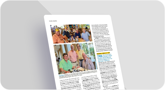 48 THE TRINITY REPORTER CLASS NOTES course, my elephant-like memory will record indelibly every last minute detail. Pity I can’t tell anyone.” As for other notes, Nic added that he and wife Ellen survived two COVID lockdowns, spent mostly taking long walks in the English countryside. And they have spent an inordinate amount of time with real estate issues in and around London, a period which thankfully has ended, at least for a while. Also, he and Ellen were successful with Nic’s paintings at their local West London outdoor crafts market. Sam Coale retired from Wheaton College after 53 years. “COVID done me in. Ten of us retired to save money for the college.” The good news is that Sam will return to Wheaton in the fall as a visiting professor. There were at least two gatherings of Trinity ’65 (plus ’64 and ’66) alumni in Florida during the winter/spring months after successful vaccinations: John Ellwood , Tom Garson , Phil Parsons , and Merrill Yavinsky spent a delightful April weekend in Winter Park. They reported that the community has two excellent museums, in addition to being the home of Rollins College. One is the Cornell Fine Arts Museum, on the campus of Rollins. Particularly fascinating was the Charles Hosmer Morse Museum of American Art, with a large collection of works and history of Louis Comfort Tiffany. All recommend a visit! Henry Hopkins contributes: “The Fahey Phi Kappa Society met regularly every other Tuesday at Club Harry’s in Hobe Sound this past winter. In attendance were Bill Notman ’64, Henry Hopkins , Mike Moonves ’66, and George Andrews ’66. All were vaccinated. If you are in the neighborhood, give us a call.” Phil Parsons writes, “I’ve been entertain- ing myself, as usual for this time of year, by tending my garden and enjoying the bounty of tomatoes, squash, blueberries and satsumas (similar to tangerines). I have been reading Half-Earth: Our Planet’s Fight for Life by Edward O. Wilson, which I recommend to all. Also, for the history buffs in our class who, like me, do not always remember what we learned at Trinity, I recommend National Geographic’s Almanac of World History . If any of you get lost on your way to somewhere else in Florida and end up in Tallahassee, stop by to see Jane and me.” We were saddened to learn of the passing in May of Ralph V. Katz , D.M.D., M.P.H., Ph.D . He was professor of epidemiology and health promotion at the NYU College of Dentistry. Also, Ralph was a founding member of the International Academy of Oral Oncology and in 2011 was a visiting scholar at the National Center for Bioethics in Research and Health Care at Tuskegee University. Well respected and a noted author of many books and articles in his field, he was recognized with numerous awards and honors, including an honorary doctorate from Trinity in 2018. The college created a video about Ralph when he was honored; you can find it by Googling Ralph Katz Trinity YouTube. Lou Rogow writes: “Ralph was a ‘class act.’ We met the year before Trinity and played on opposing high school tennis teams. Both of us decided to go to Trinity and room together. His tennis was always better than mine, and his judgment sound. He ‘probably’ kept me out of trouble for those four years. He will be missed by many, even those of us who have lost touch over the years. He has been in my thoughts recently. Condolences to his family.” REUNION • JUNE 9–12, 2022 1966 Class Secretary: David C. Charlesworth, 5 Kittanset Rd., Bedford, NH 03110-4508; david. [email protected] • Class Agent: Joseph A. Hourihan, Esq. Greetings, classmates. Thank you for the priv - ilege of allowing me to write 15 more Class Notes over the next five years. At the time of this writing, I am pleased to announce Randy Lee has accepted the office of class president. Congratulations, Randy. However, we owe a heap of thanks to our outgoing president, Brian Grimes . He has been our president for as long as we have been alumni (or close to it). Thanks, Brian. Don’t stop coming to our Reunions. By the way, he writes that he is in touch with Jim Shepard and Chuck Reydel ’s widow and occasionally runs into Sandy Mason on the Cape. Brian and Joe Hourihan will be playing in a Trin golf tournament this summer. I plan to catch up with them later this summer. Got a great letter from Dan Waterman . He writes. “The mRNA vaccines are amazing. Can you imagine what Trinity would have been like for us during a pandemic? Zoom fraternity parties. No road trips for dates. No chemistry or biology labs. But lots of study time. Can you imagine ‘odd job’ Bobko (inorganic), and that tyrant Heeren (organic) online exclusively? Kegs of beer for every dorm. Life again is approaching some normalcy. We have seen our family in Oakland recently and have plans to get to Atlanta to see Charlie’s even though crossing the Mason-Dixon line will take some political courage. Keeping busy doing nothing, I have tackled some home-repair projects recently that have taught me a lot. I think every premed at Trinity should learn woodworking, basic plumbing, how to wire a house, gar - dening, roofing, and deck repair. How about an auto mechanics course or two?” He sums Top to bottom: Bill Notman ’64, Henry Hopkins ’65, Mike Moonves ’66, and George Andrews ’66 gather this past winter at Harry and the Natives in Hobe Sound, Florida. • Merrill Yavinsky ’65, John Ellwood ’65, Tom Garson ’65, and Phil Parsons ’65 get together in April in Winter Park, Florida.