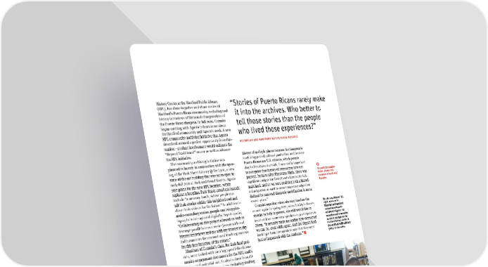 History Center at the Hartford Public Library “ Stories of Puerto Ricans rarely make (HPL), has done to gather and share stories of Hartford’s Puerto Rican community, including oral it into the archives. Who better to history interviews of historical changemakers of the Puerto Rican diaspora. In fall 2020, Guzmán tell those stories than the people began meeting with Agosto to learn more about the Hartford community and Agosto’s work. A new who lived those experiences?” HPL community archiving initiative that Agosto described seemed a perfect opportunity for collab- HISTORIAN AND HARTFORD NATIVE ELENA ROSARIO oration—student involvement would enhance the “Beyond Traditional” course as well as advance the HPL initiative. history of multiple places because the diaspora is The community archiving initiative was such a big part of cultural production and because planned to launch in conjunction with the open- Puerto Ricans are U.S. citizens, which people ing of the Park Street Library @ the Lyric, a new don’t otfen learn stateside. It was really important ↗ state-of-the-art building that was set to open in to recognize that history of connection into our early fall 2021 at Park and Broad Streets. Agosto present, because atfer Hurricane Maria, there was To watch the speaker says plans for the new HPL location, which signiifcant migration from Puerto Rico to the U.S. series, please visit commons.trincoll.edu/ replaces a longtime Park Street storefront branch, mainland, and so we were studying both a histori- Reporter. include “a memory booth, where people can cal migration as well as a contemporary migration tell their stories within this neighborhood and deifned by renewed diasporic mobilization in more share their visions for the future.” In addition to recent years.” audio-recording stories, people can bring pho- Guzmán says that when she next teaches the Ray Alvarez-Adorno ’23, tographs to be captured digitally. Says Guzmán, course again in spring 2022, when Trinity’s classes right, works with “Collaborating on this project allowed us both to should be fully in person, she still would like to historian and Hartford leverage parallels in our work—Jasmin with oral invite at least some new speakers to participate via native Elena Rosario history interviews and me with my interest in dig- Zoom. “It actually made me realize how connected and Jasmin Agosto ’10, education and community ital humanities for research and teaching contexts we can be, even while apart. And the biggest feed- outreach manager at the for this ifrst iteration of the course.” back I got from the speakers was that they were Hartford History Center at the Hartford Public Library Members of Guzmán’s class, for their ifnal proj- just so impressed with the students.” (HPL), in the center. ects, were tasked with creating a portfolio of com- munity engagement documents for the HPL staff’s review and potential use. Students chose from dif- ferent ifnal assignment options, including dratfing survey questions to be posed to community mem- bers and designing promotional ads to promote the memory booth via social media. During the summer, three Trinity students made further contributions to the project. Ray Alvarez-Adorno ’23, who was part of the “Beyond Traditional” class, extended his work on the com- munity archiving initiative as a participant in Trinity’s Public Humanities Collaborative. Kendall Alexander ’22 and Isabelle Sayas ’23 served as anthropology research assistants. With Guzmán as faculty partner and Agosto and Rosario as commu- nity partners, the three students were involved in O various ways, including researching local sites of interest for potential inclusion in the project and CAIT exploring different digital storytelling platforms for CK NI use in the initiative. ) GHT Guzmán notes that a key lesson for students in RI ( : the course was understanding that in studying O T Puerto Rico, “you’re really studying an unfolding PHO FALL 2021 35