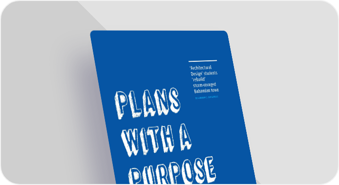 ‘Architectural Design’ students ‘rebuild’ storm-ravaged Bahamian town PLANS BY ANDREW J. CONCATELLI WITH A PURPOSE How do you rebuild a whole town whose buildings and infrastructure were blown apart and washed into the ocean by a hurricane? That daunting challenge was the starting point for a theoretical exer- cise that constituted the bulk of the spring 2021 “Architectural Design” 1 2 ’ course at Trinity College. Cross-listed in the Art History Program and the Engineering Department, the course was taught by Associate Professor of Fine Arts Kristin A. Triff and Visiting Assistant Professor of Fine Arts EVERETT David N. Duncan ’79, a practicing architect who recently moved his Y LIL oiffce from Connecticut to Maine. : O T PHO 24 THE TRINITY REPORTER