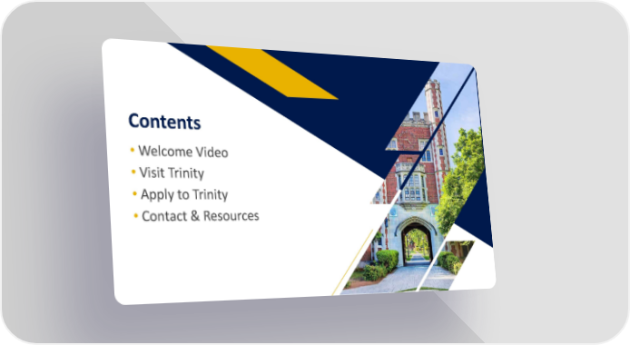 Contents • Welcome Video • Visit Trinity • Apply to Trinity • Contact & Resources